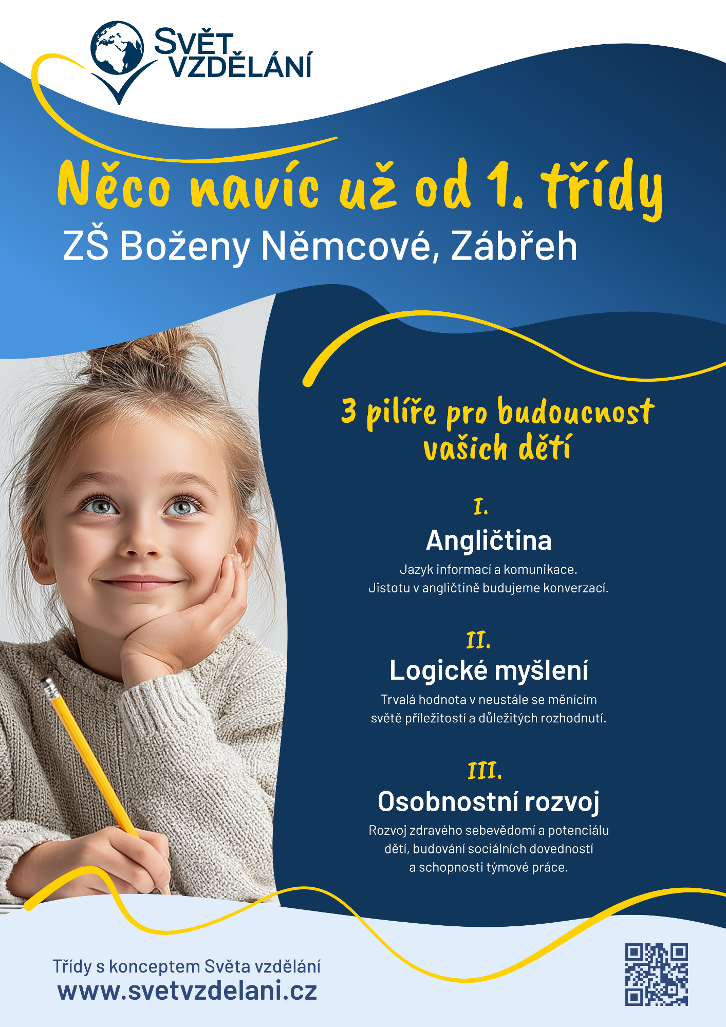 Svět vzdělání je správnou volbou pro rodiče, kteří pro svého budoucího prvňáčka chtějí něco víc než standardní vzdělání. Tyto třídy jsou součástí běžných základních škol a nabízejí něco navíc už od 1. třídy.